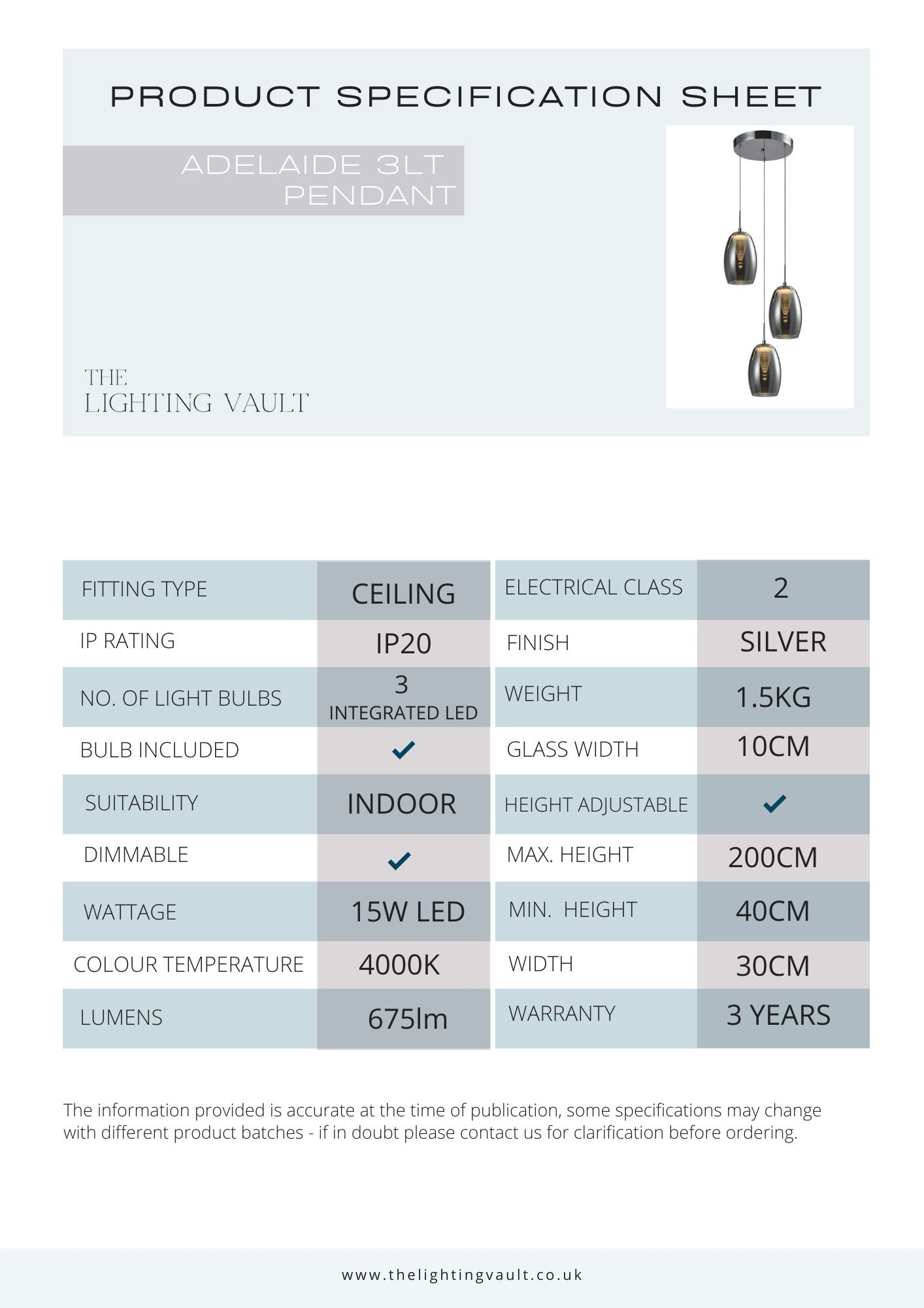 As this is part of our premium LED collection an extended 3 year warranty is offered on this light. Individual components are also replaceable.