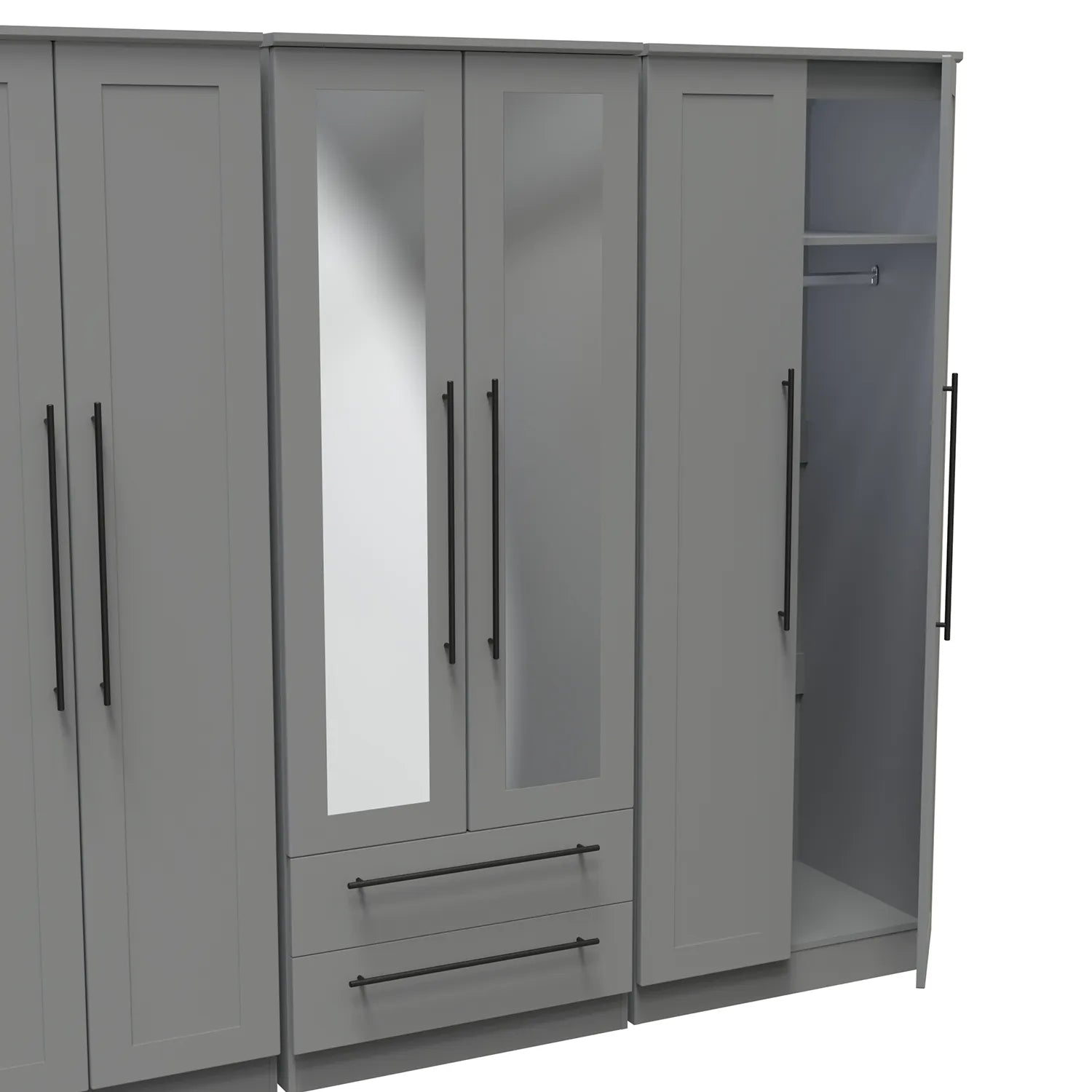 - Comprehensive range includes wardrobes (2-door, 3-door, 4-door, 5-door, and 6-door)