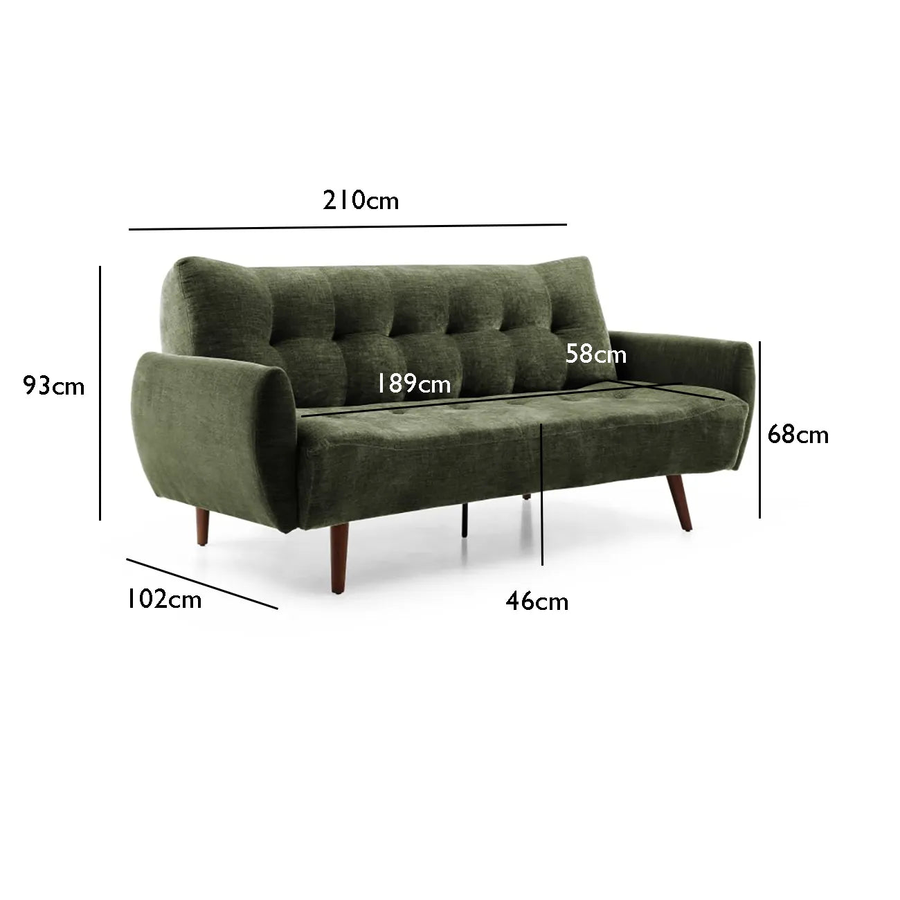 - Sofa: (H) 93cm | (W) 210cm | (D) 102cm