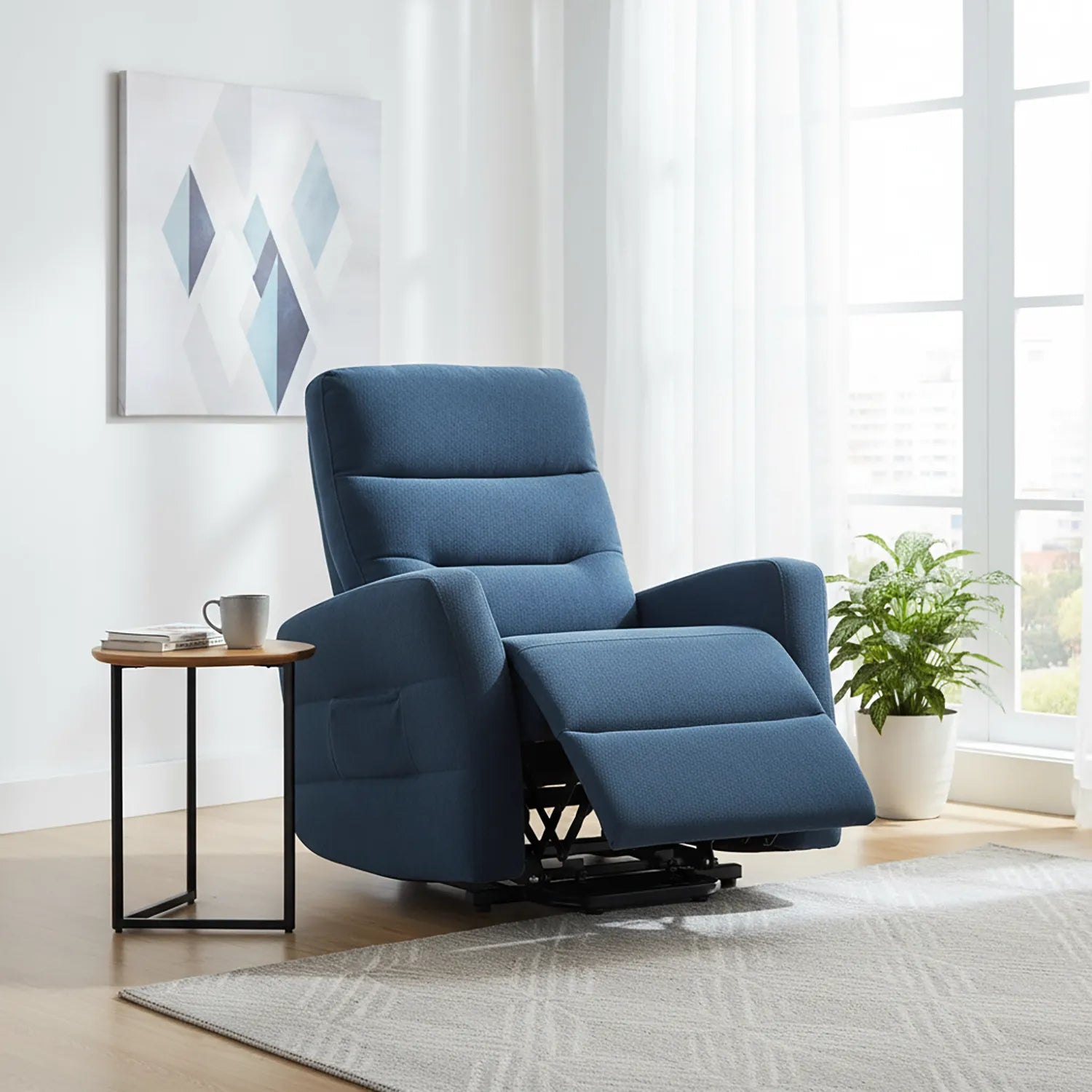 Crewe Blue Fabric Tilt and Rise Electric Recliner Chair