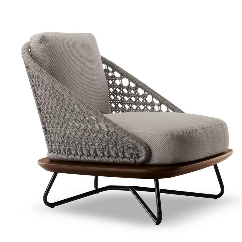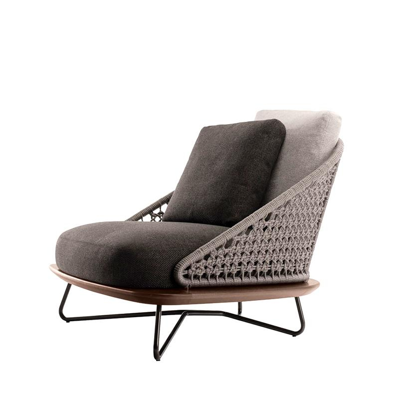 The Designer Style Rattan Single Armchair in Grey is a beautiful and functional piece of outdoor furniture that combines the best of materials and design. The chair is designed to be used in outdoor settings, whether on a lakeside veranda or a terrace overlooking the sea. It is made of lightweight metal, solid iroko heartwood, woven polypropylene fiber, and elegant fabrics, which make it both comfortable and stylish.