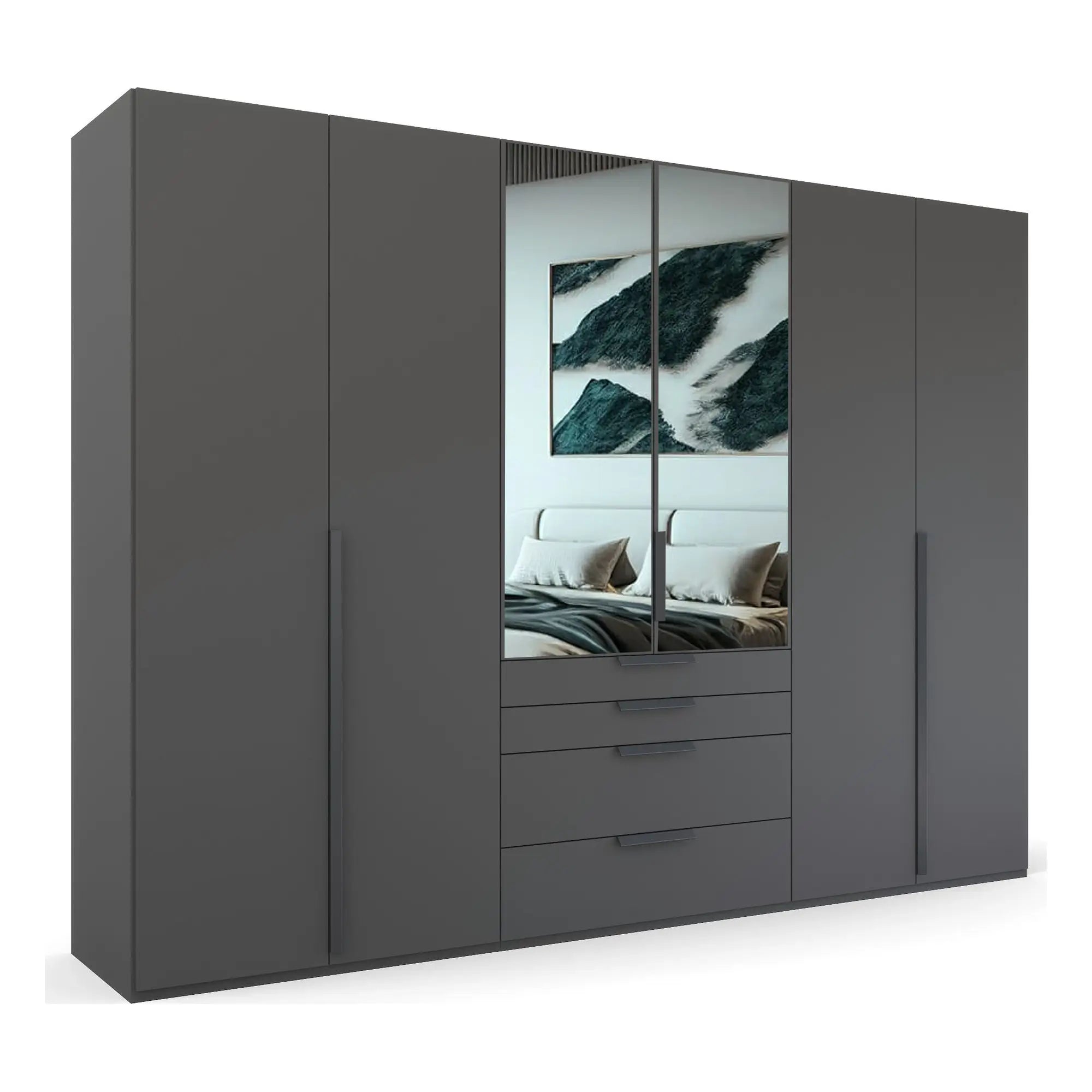 - Hinged 6 door, 4 Drawers wardrobe.