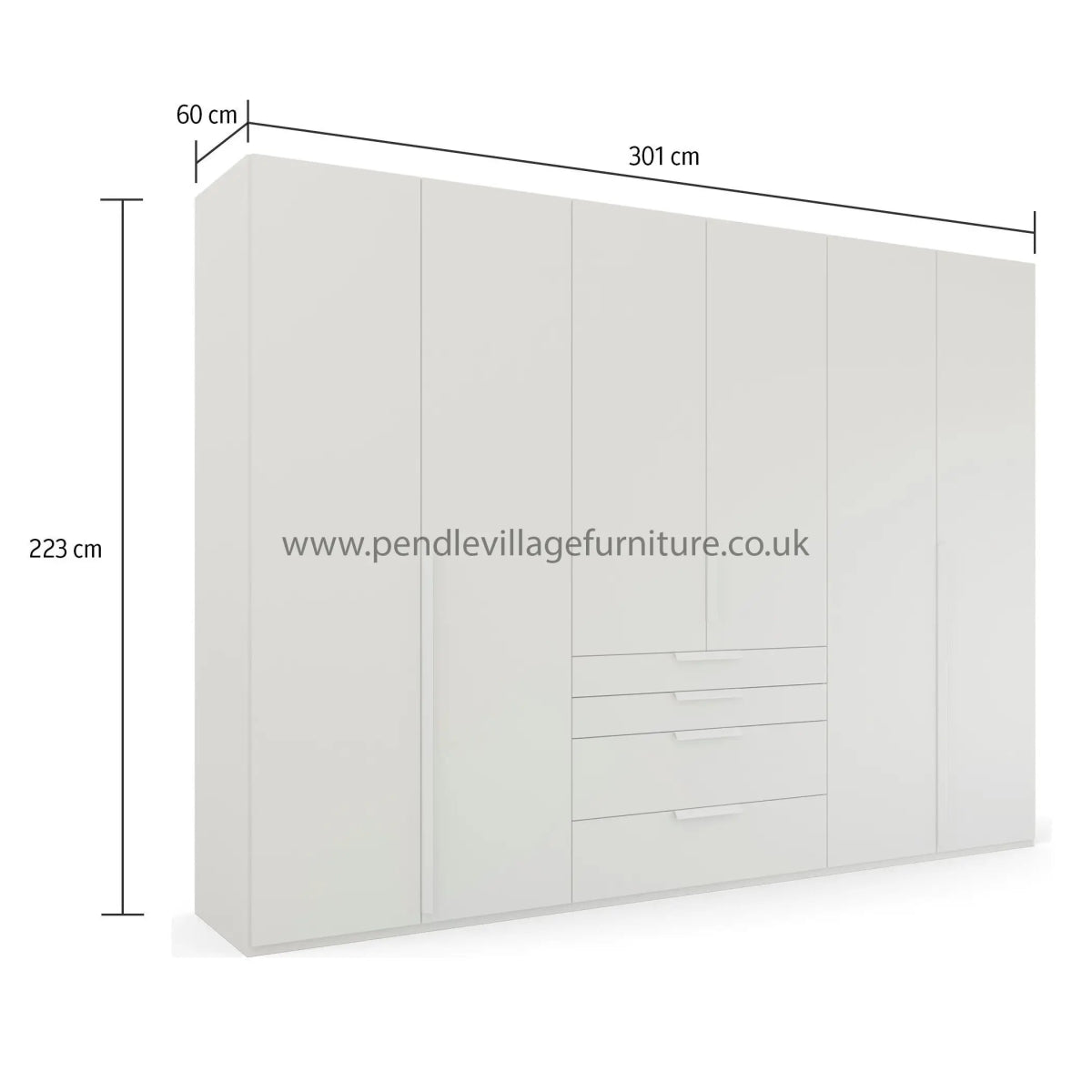 - Standard Wardrobe: Width: 301cm Height: 223cm Depth: 60cm