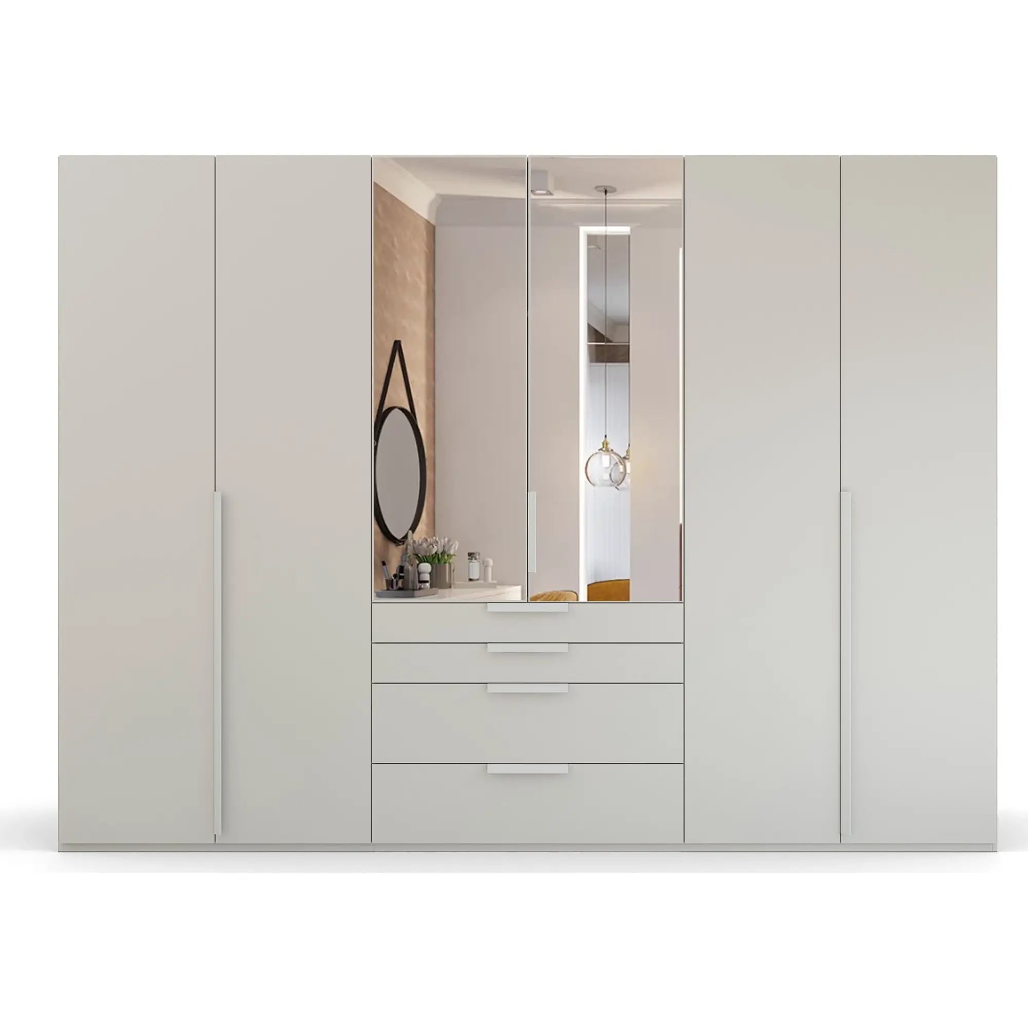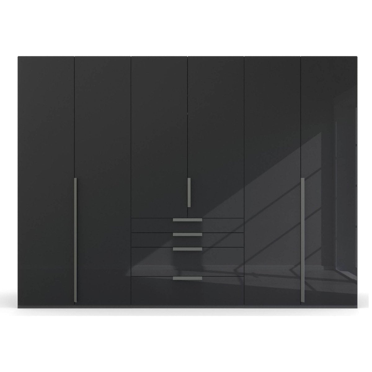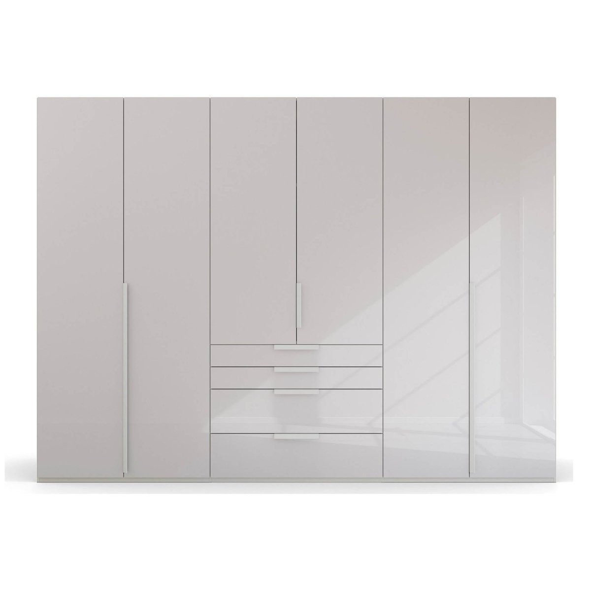 Transform your bedroom with the Frans 300cm Glass 6 Door Wardrobe With Drawers – where puristic design meets practical functionality. Elevate your storage solutions with Rauch’s commitment to quality and style.
