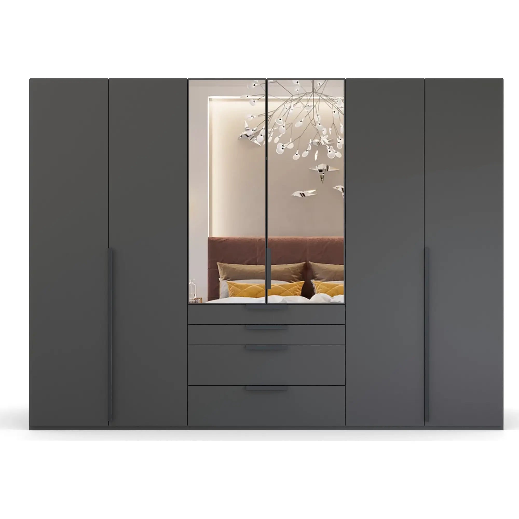 Frans 300cm Glass 6 Door Wardrobe With Drawers