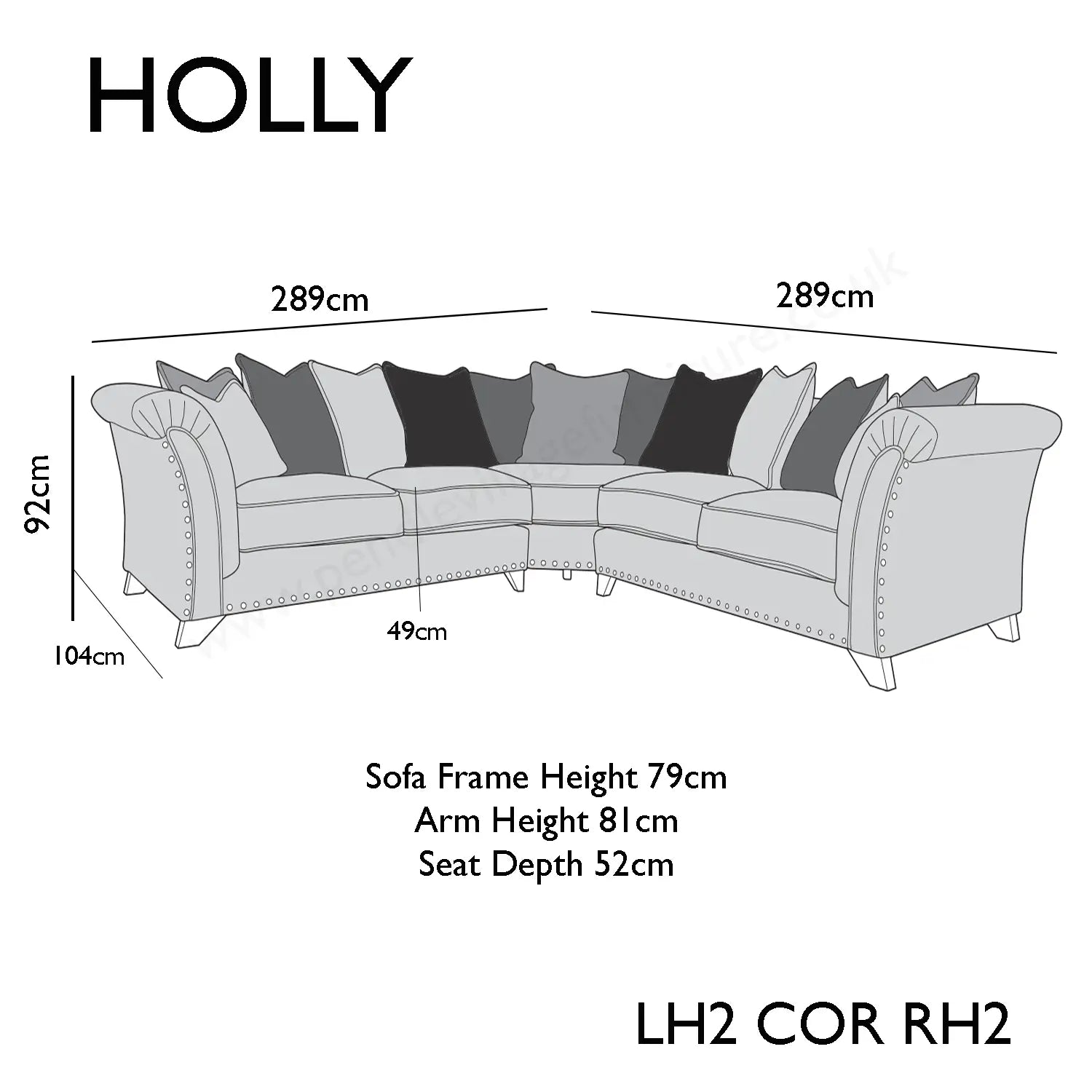 Introducing the Holly Fabric Pillow Back Corner Sofa with Studs, a perfect blend of contemporary elegance and unparalleled comfort. This stunning piece of furniture is designed to enhance your living space, providing a cozy and stylish retreat for your home.
