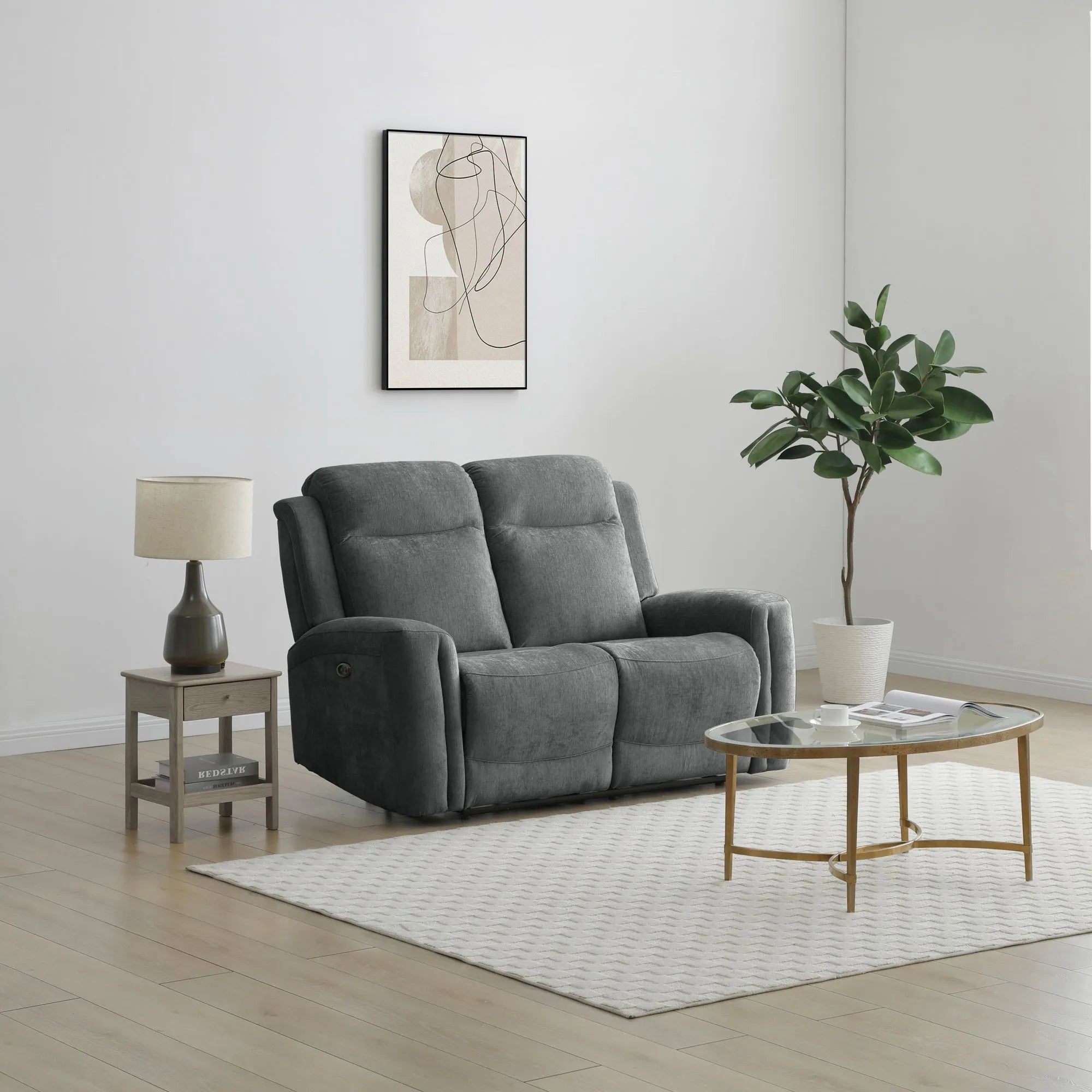 - Soft, durable grey chenille fabric upholstery