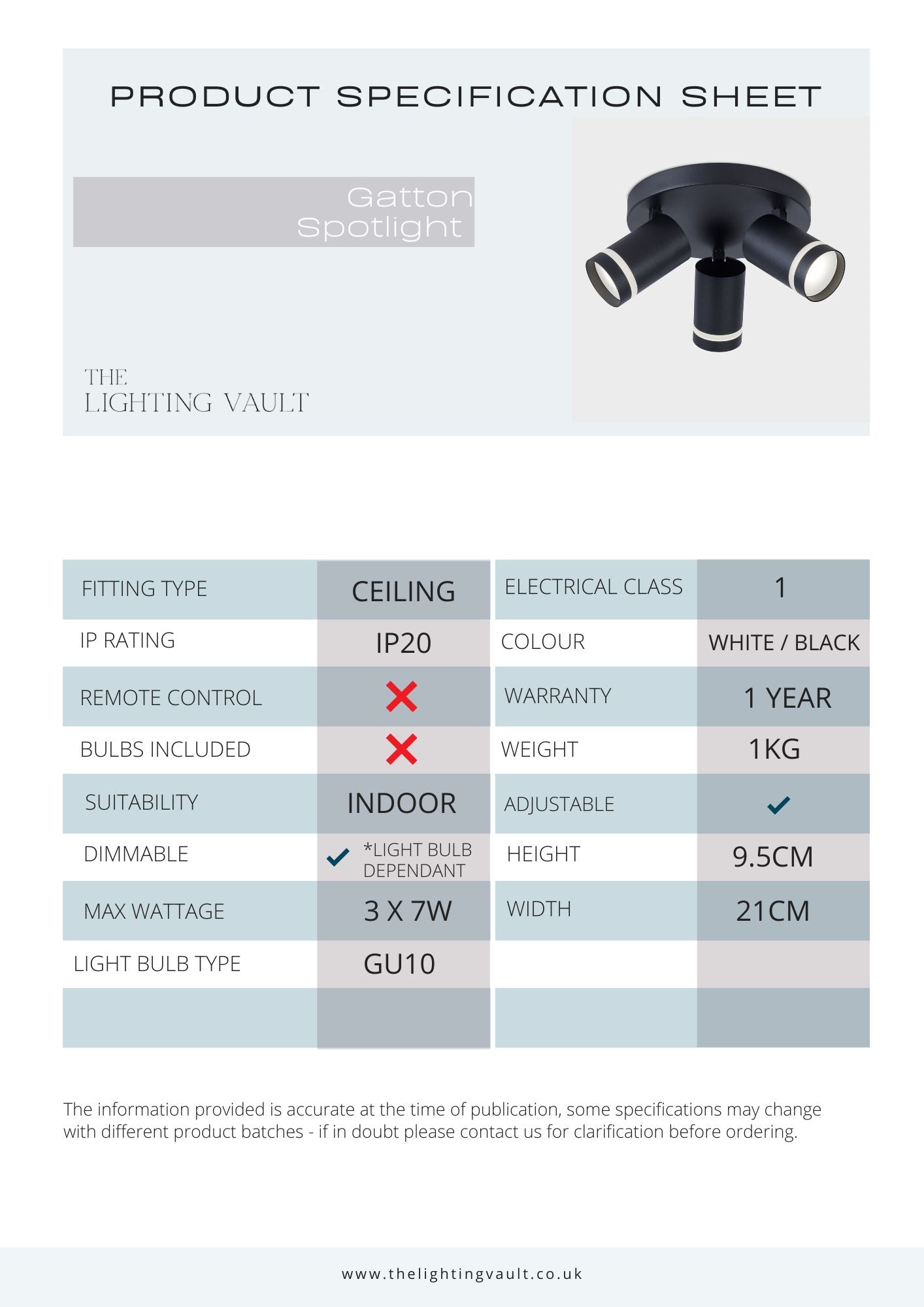 The Gatton spotlight is a minimalist light with metal tube in either black or white finish. This simple design is perfect for low ceilings. Matching fittings and sizes are available in the Gatton collection.