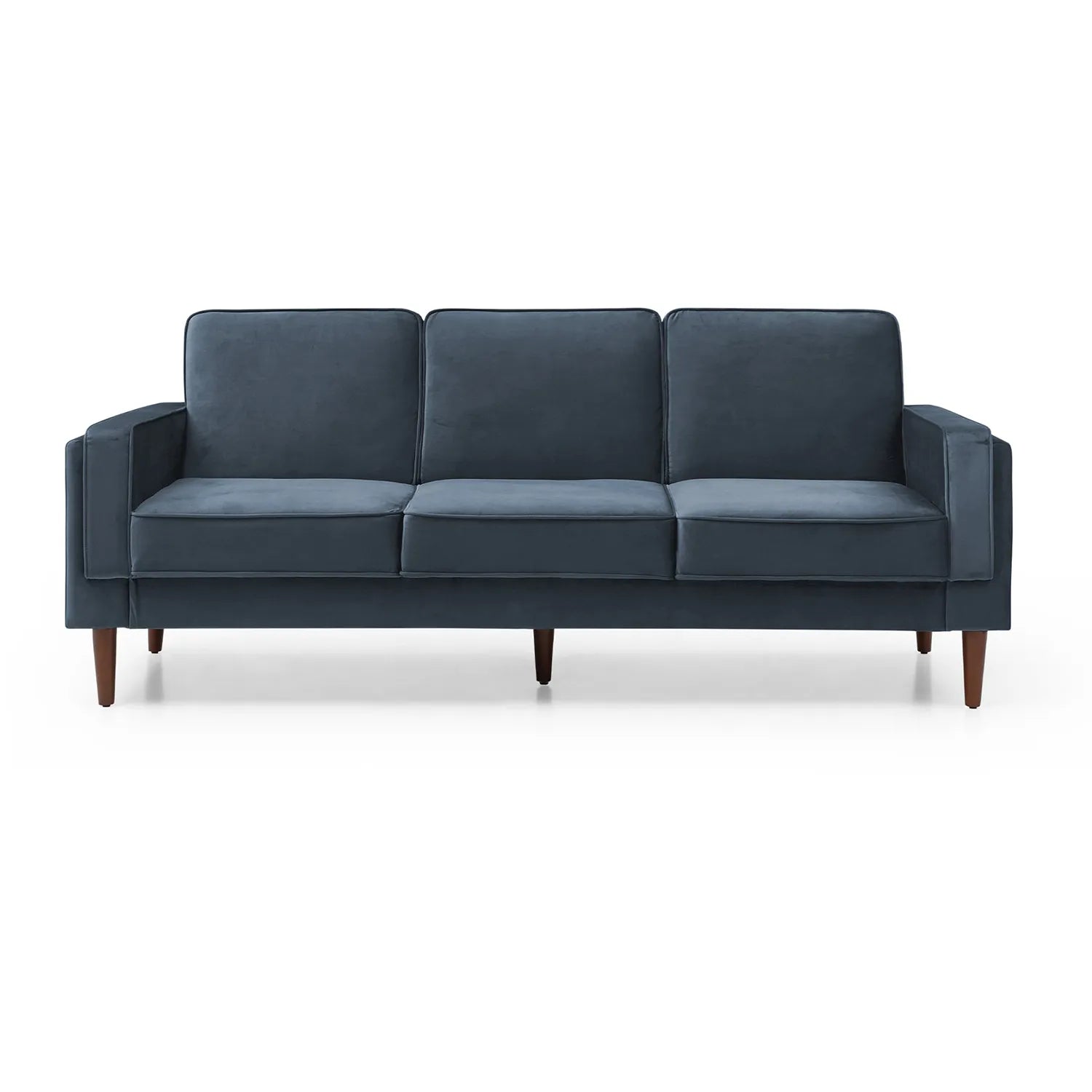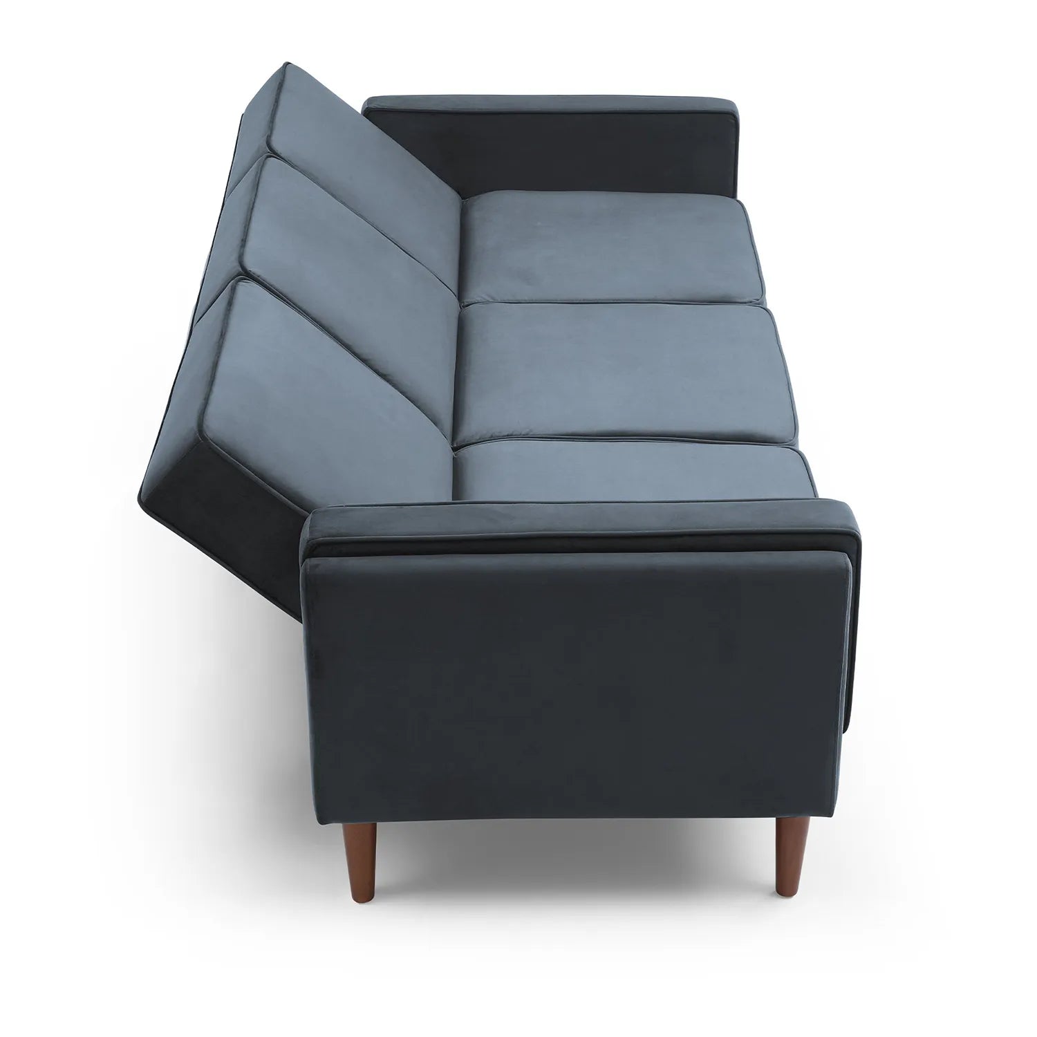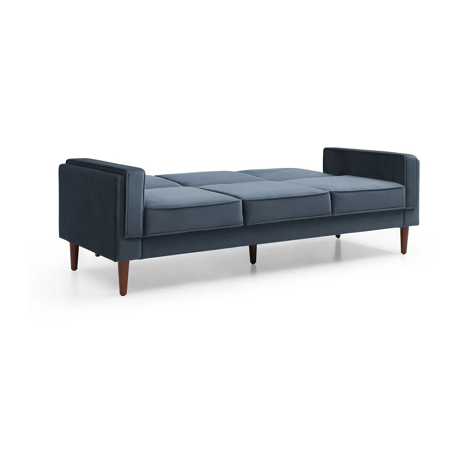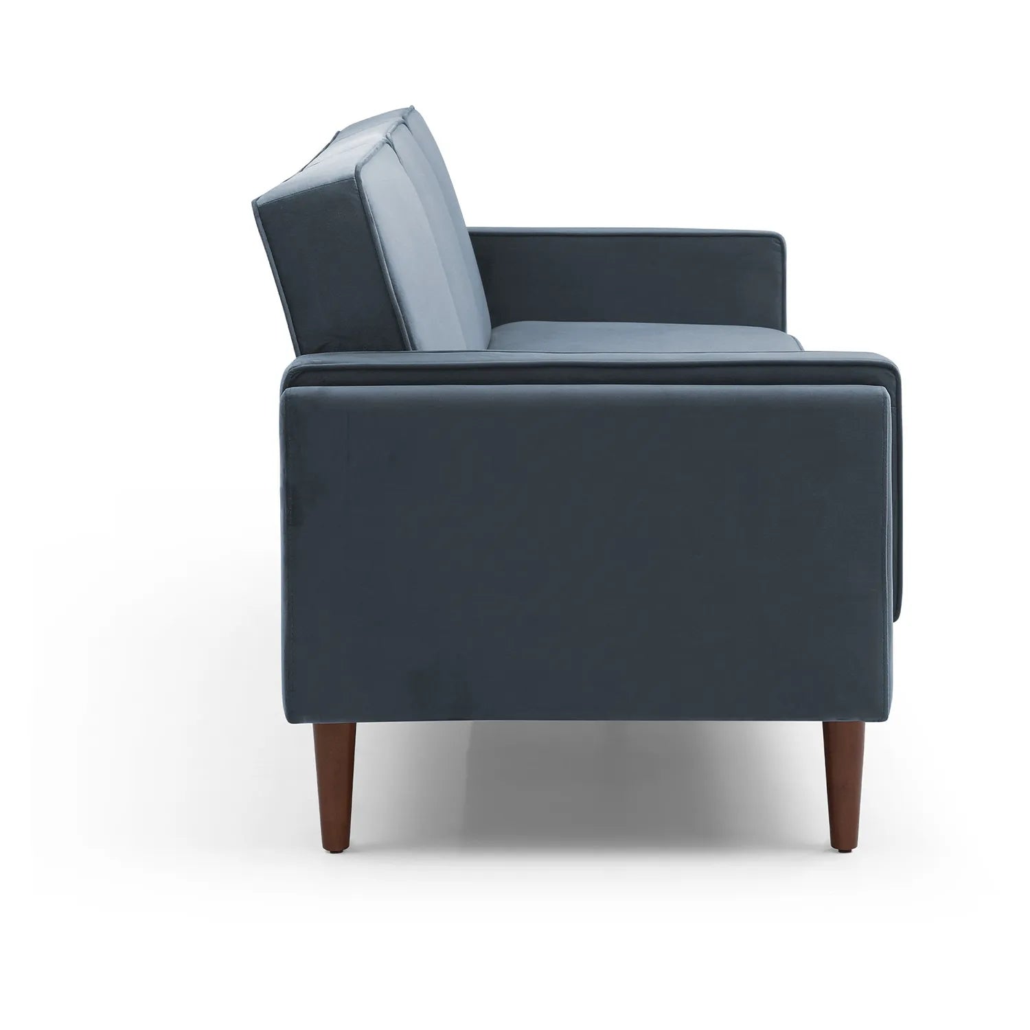 The sleek, compact design is complemented by easy screw-in Scandi-style walnut wooden feet, adding a touch of elegance and stability. Available in two opulent velvet fabric options – Olive and Navy – this sofa bed blends seamlessly into various interior styles, offering both functionality and on-trend appeal.