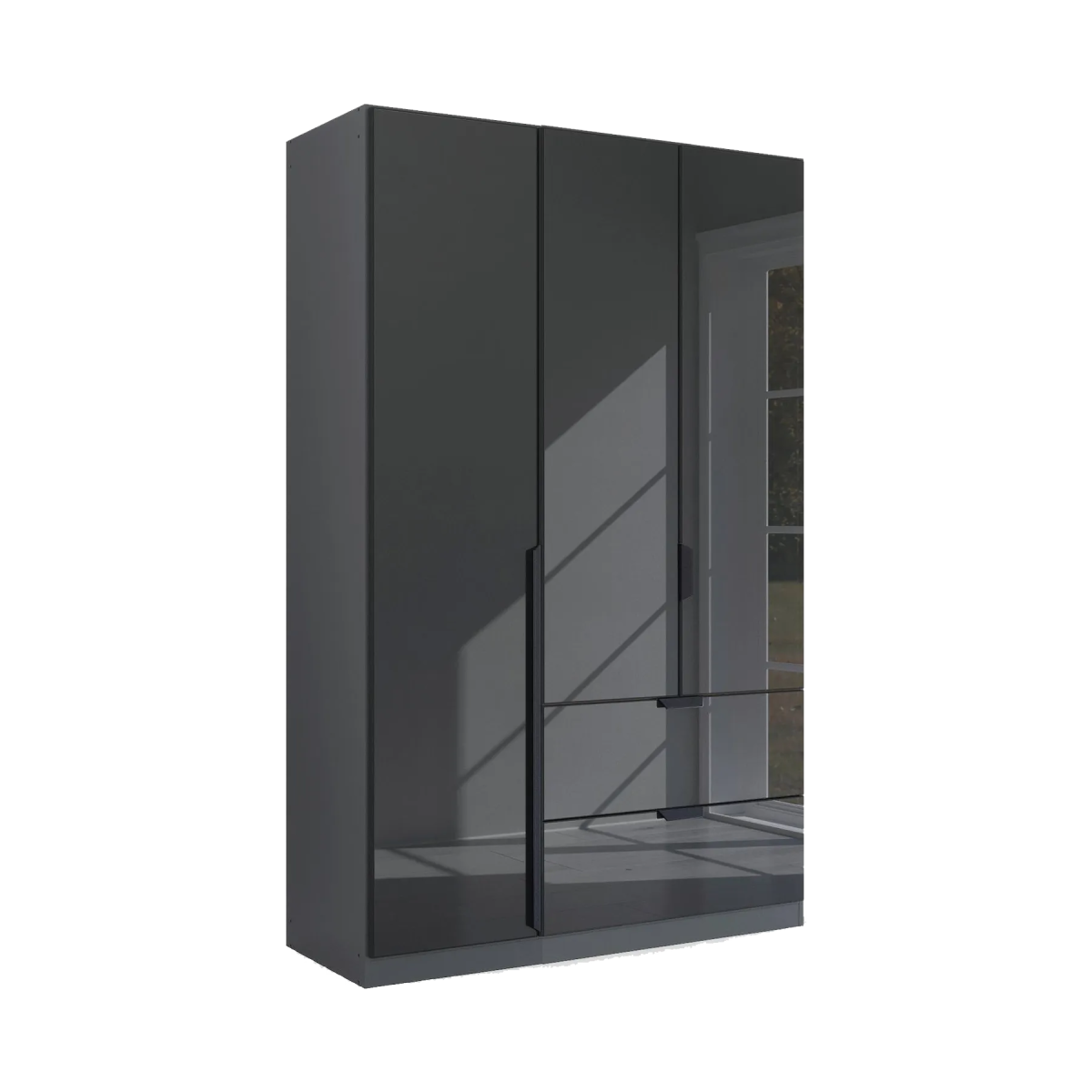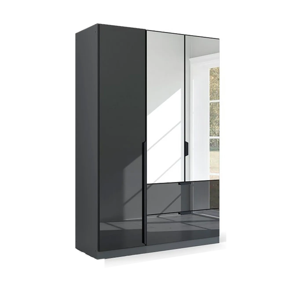 Mulheim 3 Door Wardrobe with 2 Drawers – Basalt Glass or Mirror Front