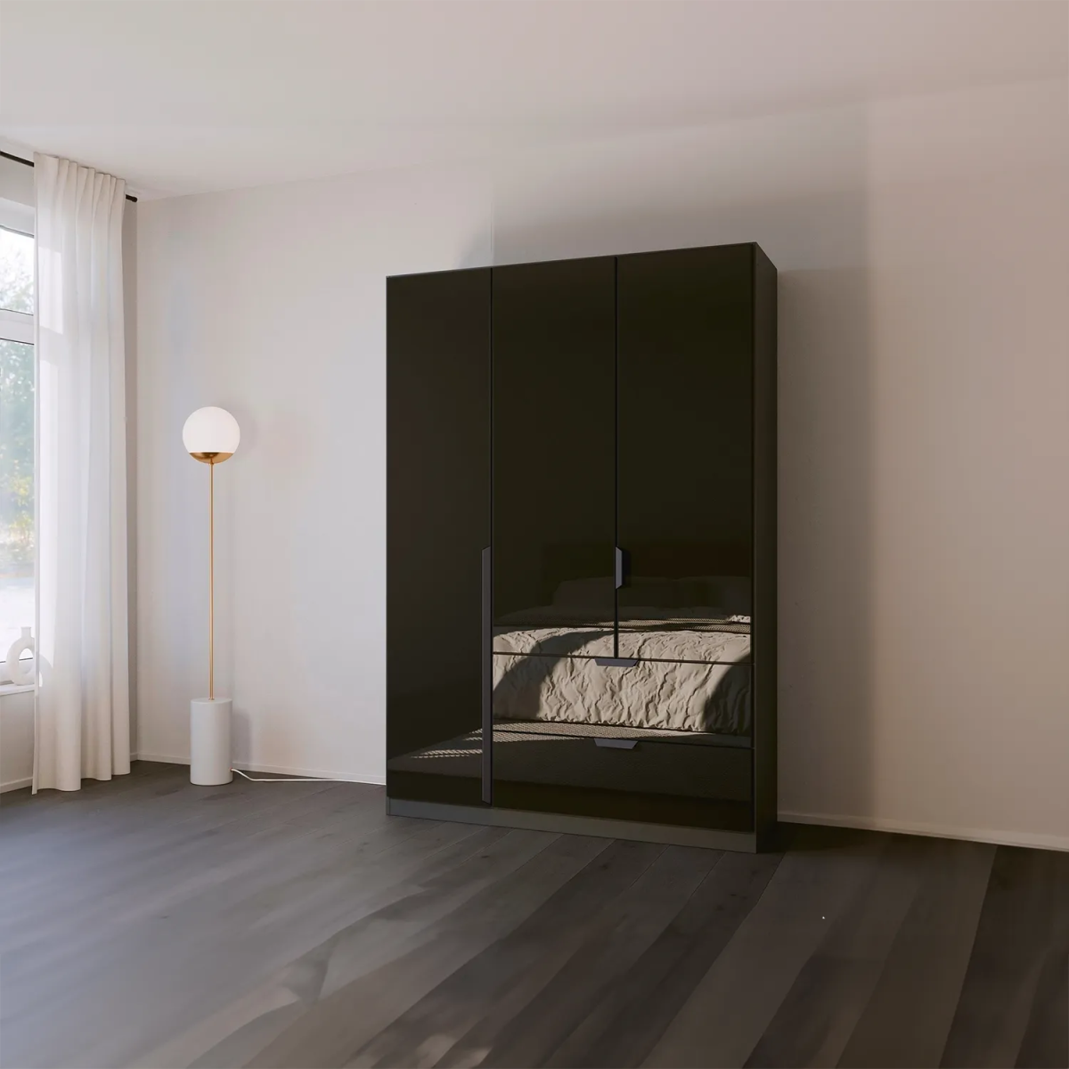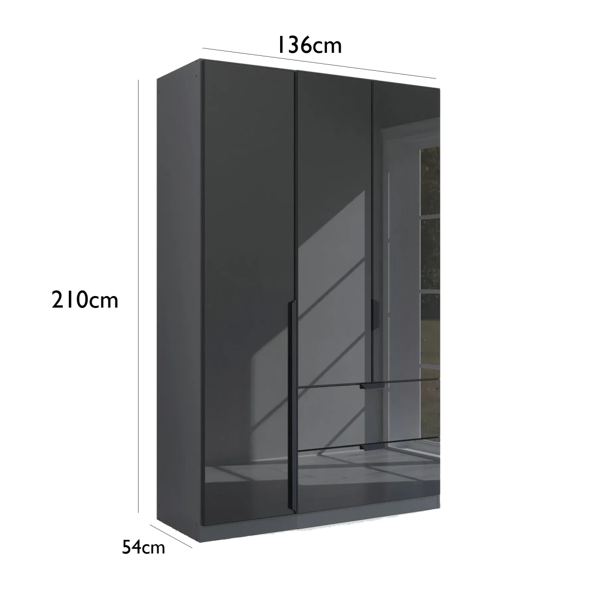 SKU: mulheim-3-door-basalt-glass-wardrobe-with-drawers-and-mirror Category: