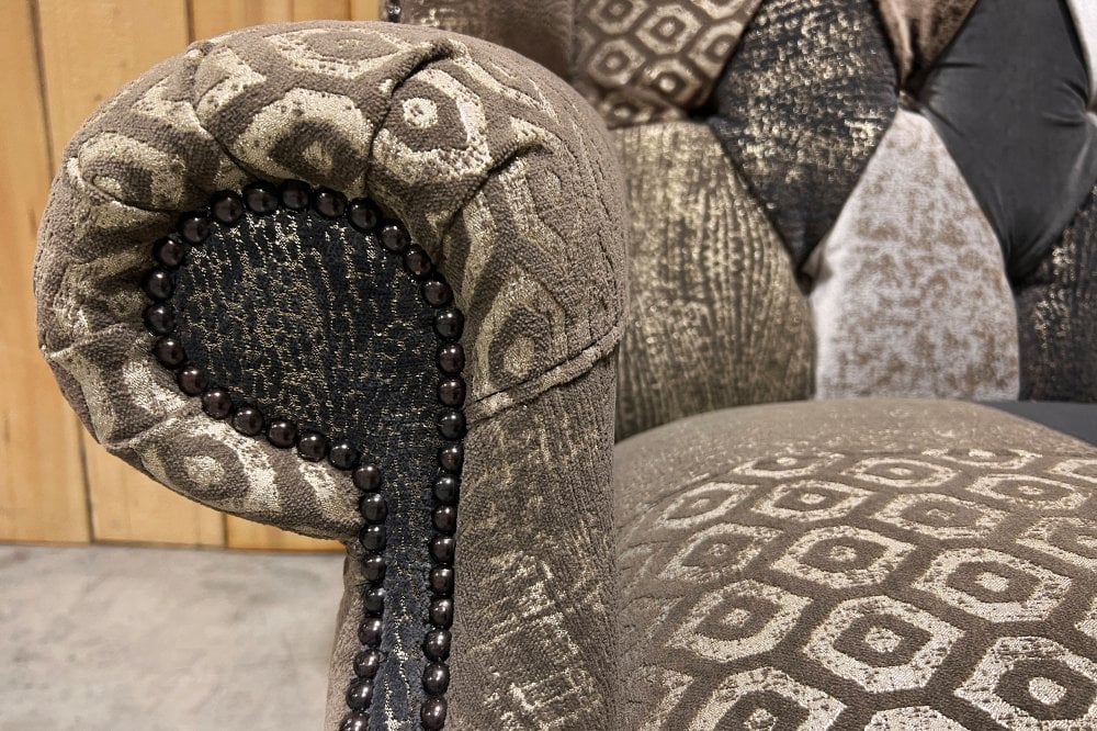 Make a bold, elegant statement with the Oswald & Pablo Wiston Patchwork Velvet Wing Chair, a stunning addition to the Wiston range. Upholstered in a unique combination of mink, grey, and brown velvet fabrics, this handcrafted chair brings together traditional charm and modern design. Each patchwork panel is individually selected and stitched to create a bespoke look that’s both luxurious and full of character.