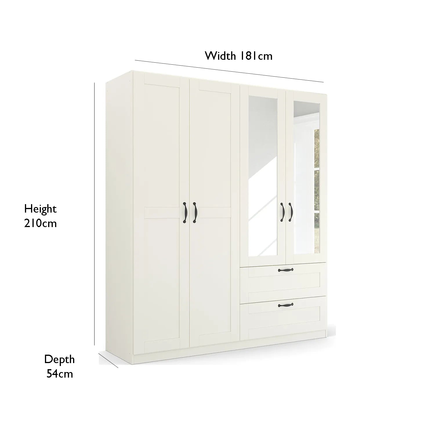 The Cottage wardrobe features four doors, with the option to include mirrors on the two right-hand doors. These mirrors not only add a stylish touch but also enhance the room’s sense of space and light, making your bedroom feel more open and airy. The left-hand doors open to reveal generous storage space, ideal for hanging clothes and storing larger items.
