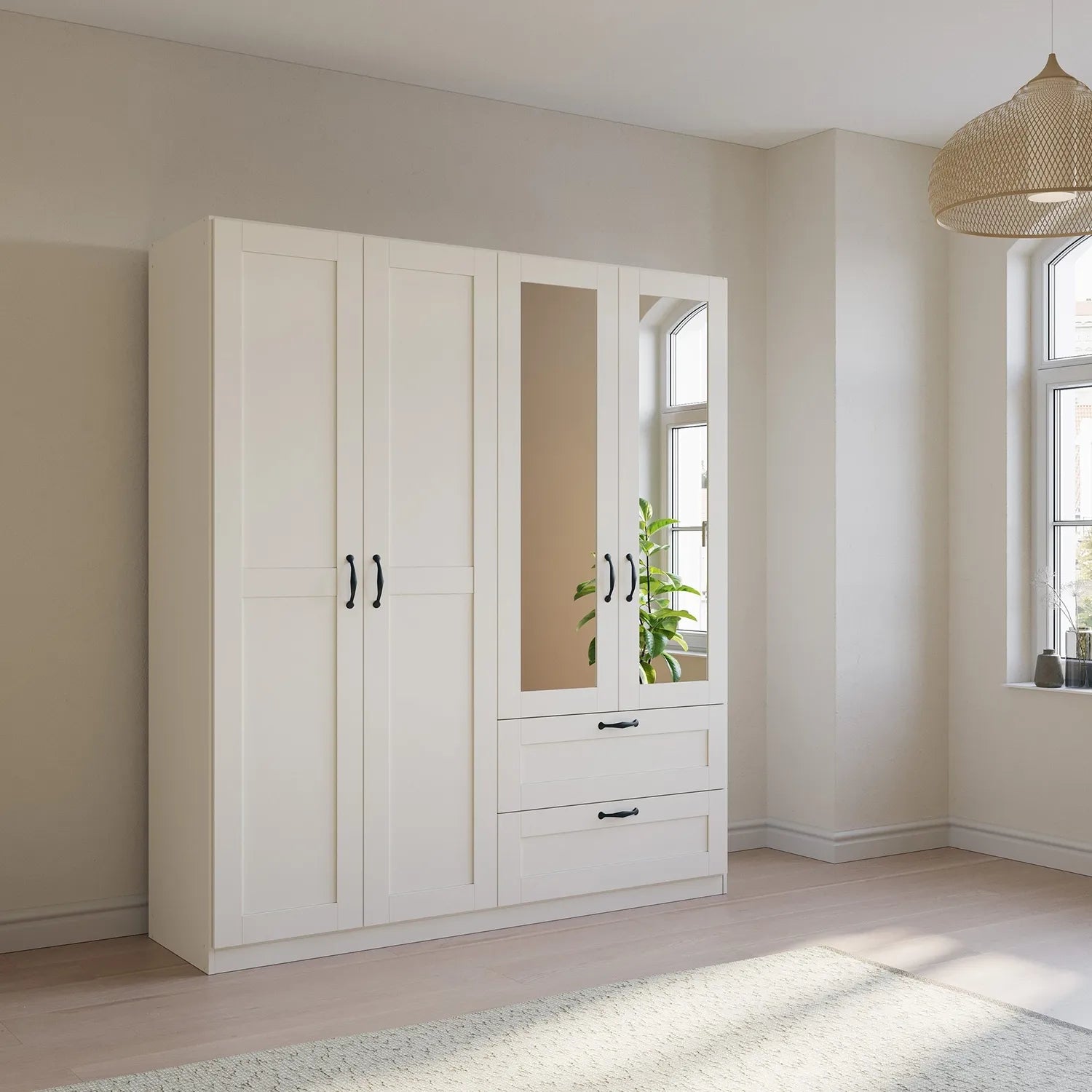 The Rauch Cottage 181cm Wide 4 Door Wardrobe with Drawers is the ideal choice for those who appreciate the blend of traditional style and modern convenience. With its flexible storage options and elegant design, this wardrobe enhances any bedroom with both beauty and practicality