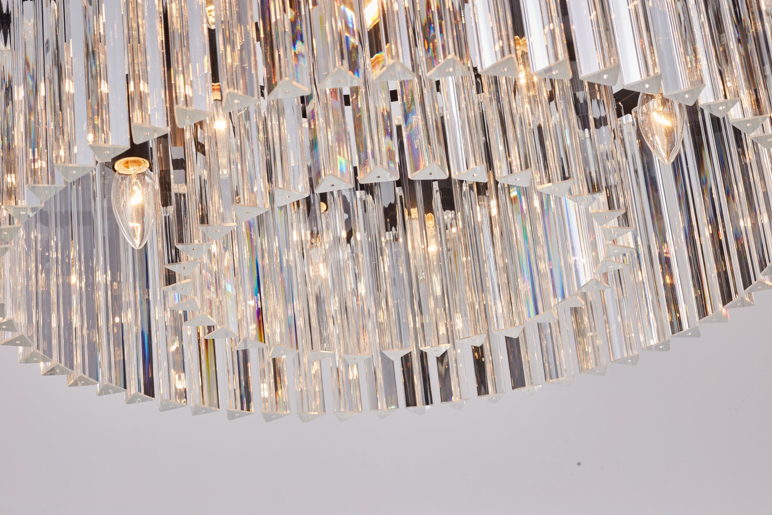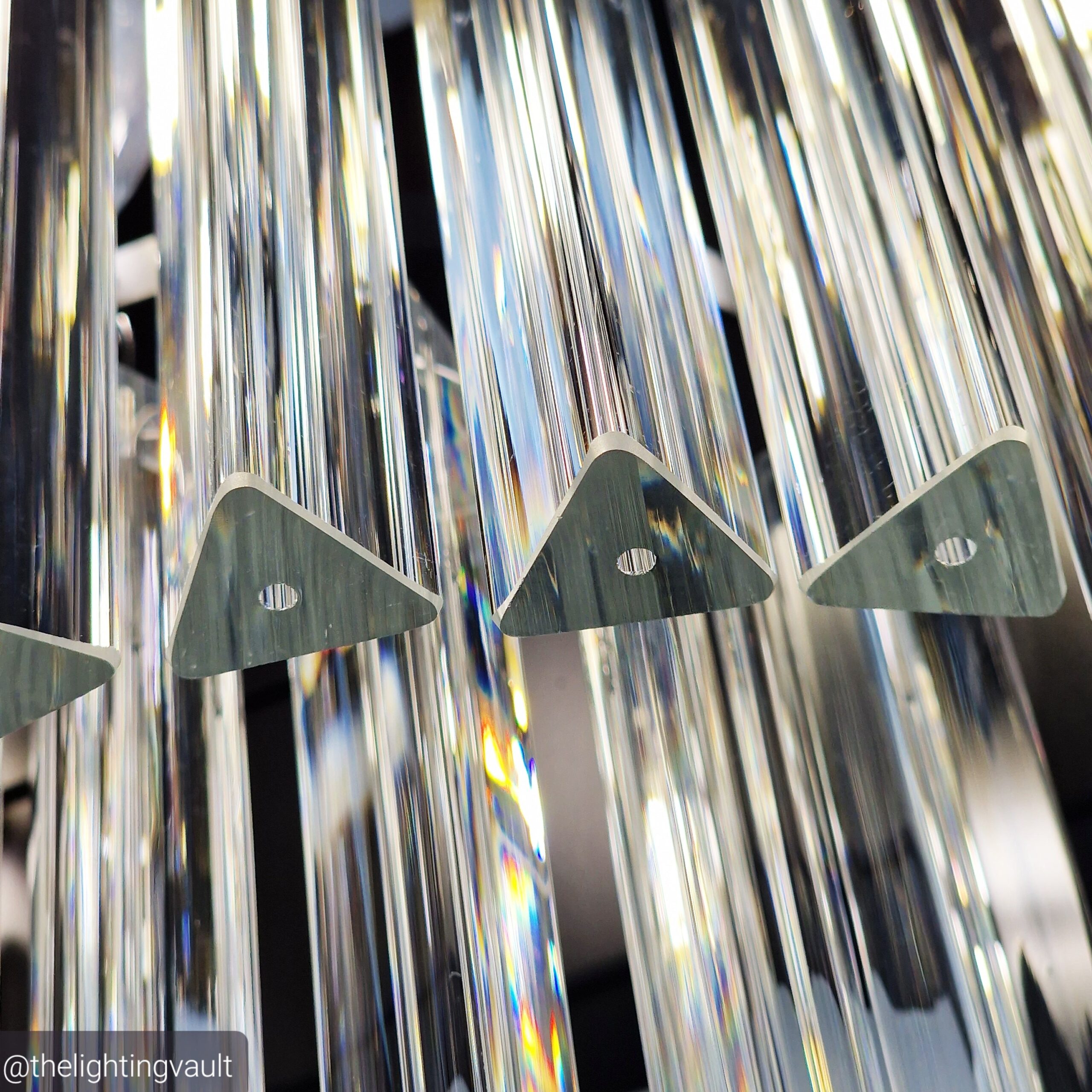 Bring timeless elegance into your home with the Seville Small Chandelier, a statement piece designed to exude refined luxury. Expertly crafted with a striking black frame and adorned with tiers of precision-cut glass rods, this chandelier radiates sophistication and glamour. The impactful design makes it perfect for dining rooms, bedrooms, or living spaces where style is as important as function. The cascading glass prisms beautifully catch the light, creating a warm, shimmering glow that enhances any interior with a sense of grandeur. A true centrepiece, the Seville Small Chandelier combines contemporary elegance with classic detailing, making it an exquisite choice for those who appreciate high-end design and lasting quality.