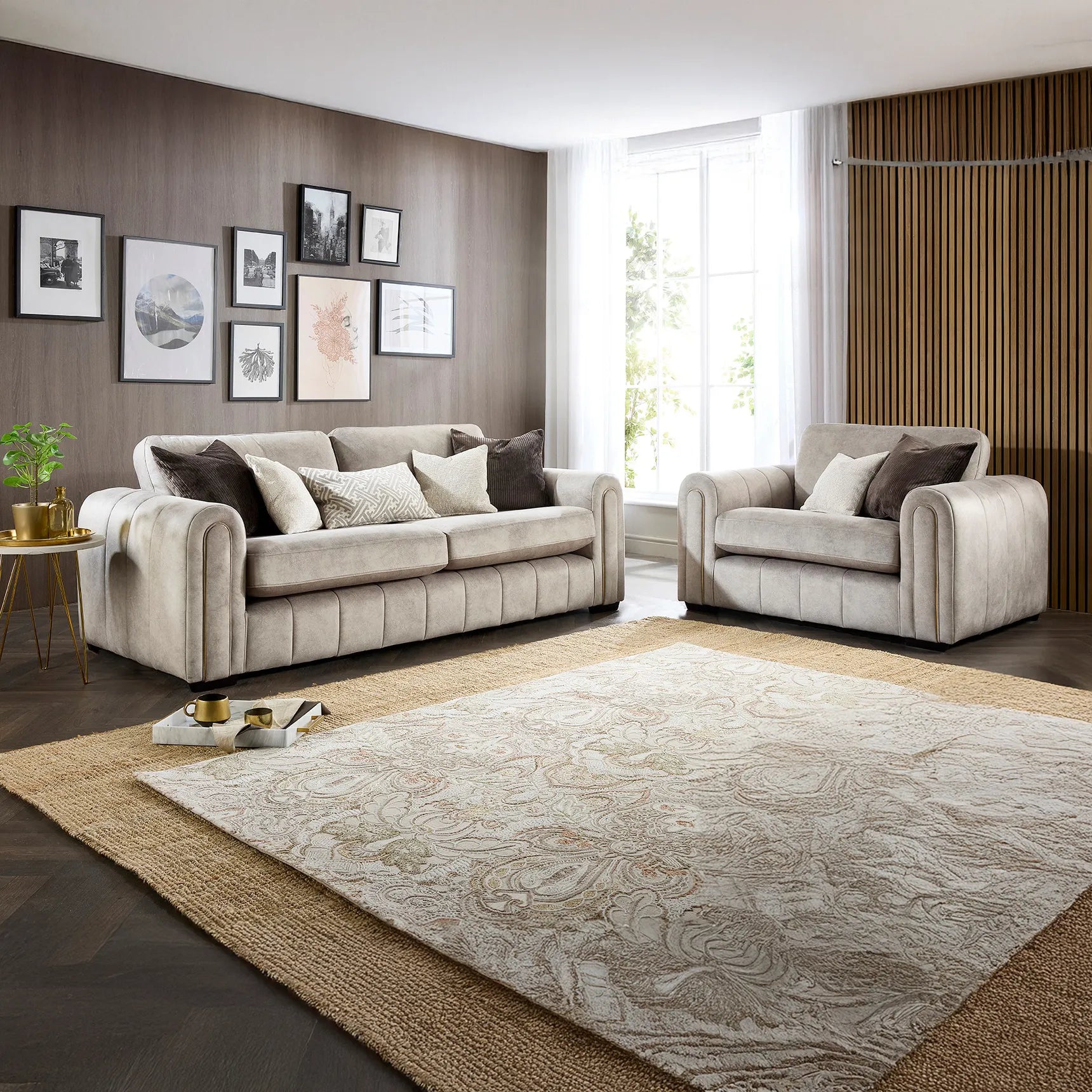 Soho Gemini Stone Fabric 3 Seater Sofa